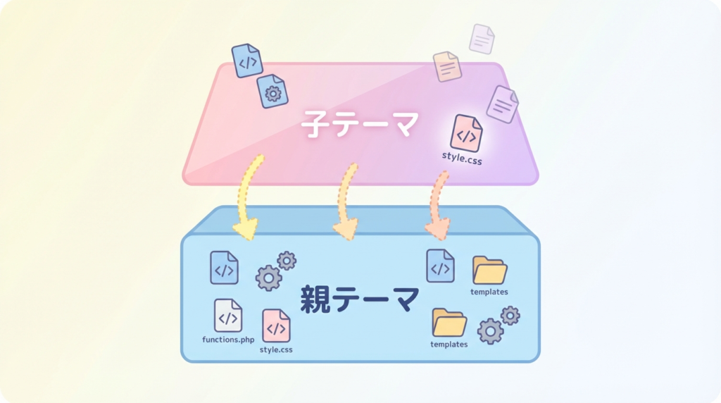 「子テーマ」は、既存のテーマ(=親テーマ)を土台にして、その上に自分のカスタマイズだけを載せるための“上乗せテーマ”です。